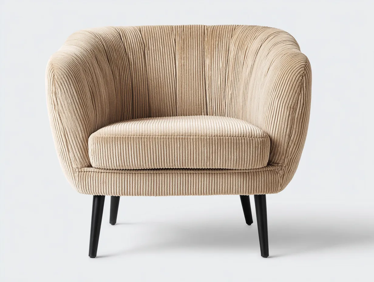 Dieser Stoffsessel verbindet eine kompakte Form mit einem ruhigen modernen Erscheinungsbild und eignet sich ideal für Wohnzimmer, Leseecken oder gemütliche Sitzbereiche. Die weiche Cordstruktur und die geschwungene Rückenform sorgen für eine angenehme Sitzumgebung und fügen sich harmonisch in unterschiedliche Wohnstile ein.